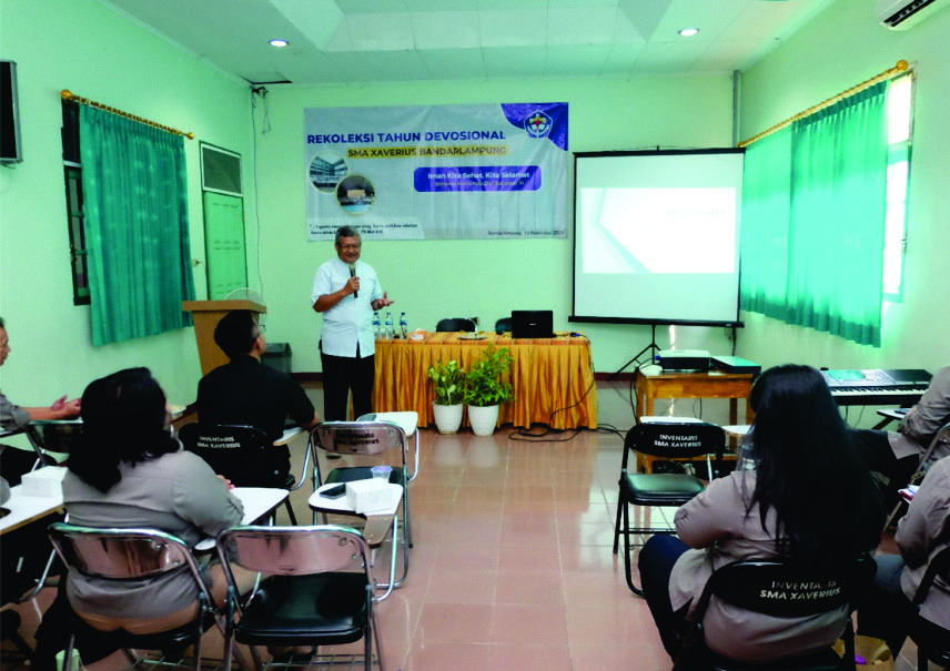 Rekoleksi kali ini dibawakan oleh RD. Fritz Dwi Saptoadi, Romo Fritz sapaan yang biasa disematkan untuknya bertugas di Kota Gajah julukan Kota Metro. Beliau langsung dari Kota Metro melakukan perjalanan sekitar 2 jam untuk sampai di SMA Xaverius Bandarlampung. Dengan senyum ramah dan penuh keceriaan, beliau menyapa seluruh pendidik dan tenaga kependidikan di SMA Xaverius Bandarlampung.