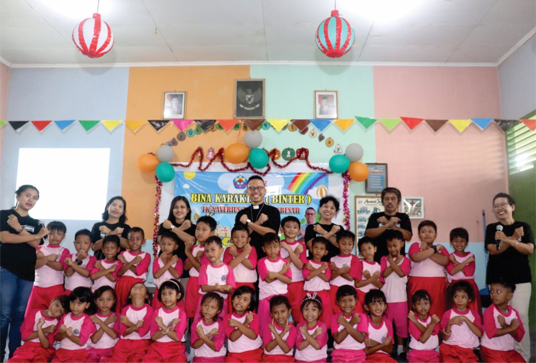 Kali ini, TK Xaverius Terbanggi Besar menyelenggarakan kegiatan bina karakter untuk pertama kalinya bagi anak didik TK Xaverius Terbanggi Besar. Dengan tema Binter untuk tahun ini adalah “Aku Cinta Allah Sesama dan Budaya”. Kegiatan Bina Karakter (Binter) dilakukan dengan melibatkan kegiatan indoor yang pastinya penuh aktivitas yang menarik dengan tujuan untuk menyeimbangkan antara kecerdasan Intelektual dan Spiritualitas siswa, melatih tentang kedisiplinan dan tanggung jawab siswa, serta mempersiapkan mental siswa sebagai persiapan untuk jenjang pendidikan selanjutnya.